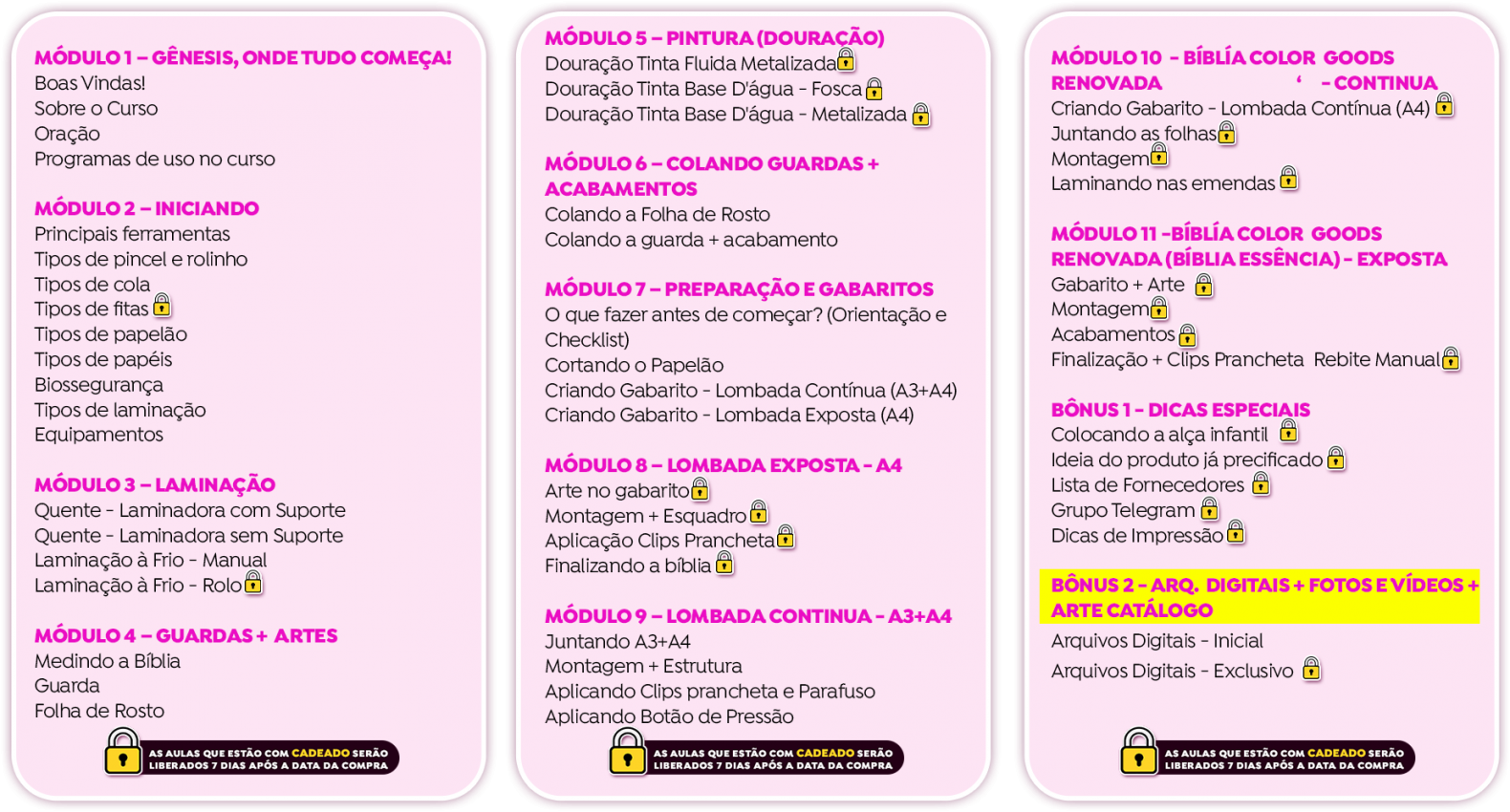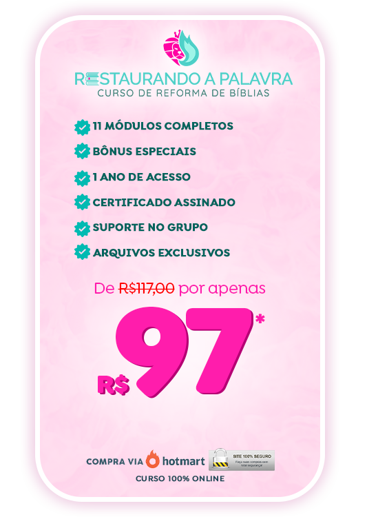 💡 A boa notícia é que 1 ano é mais que suficiente para você assistir todas as aulas, praticar as técnicas, produzir suas Bíblias e começar a faturar com o conhecimento adquirido.